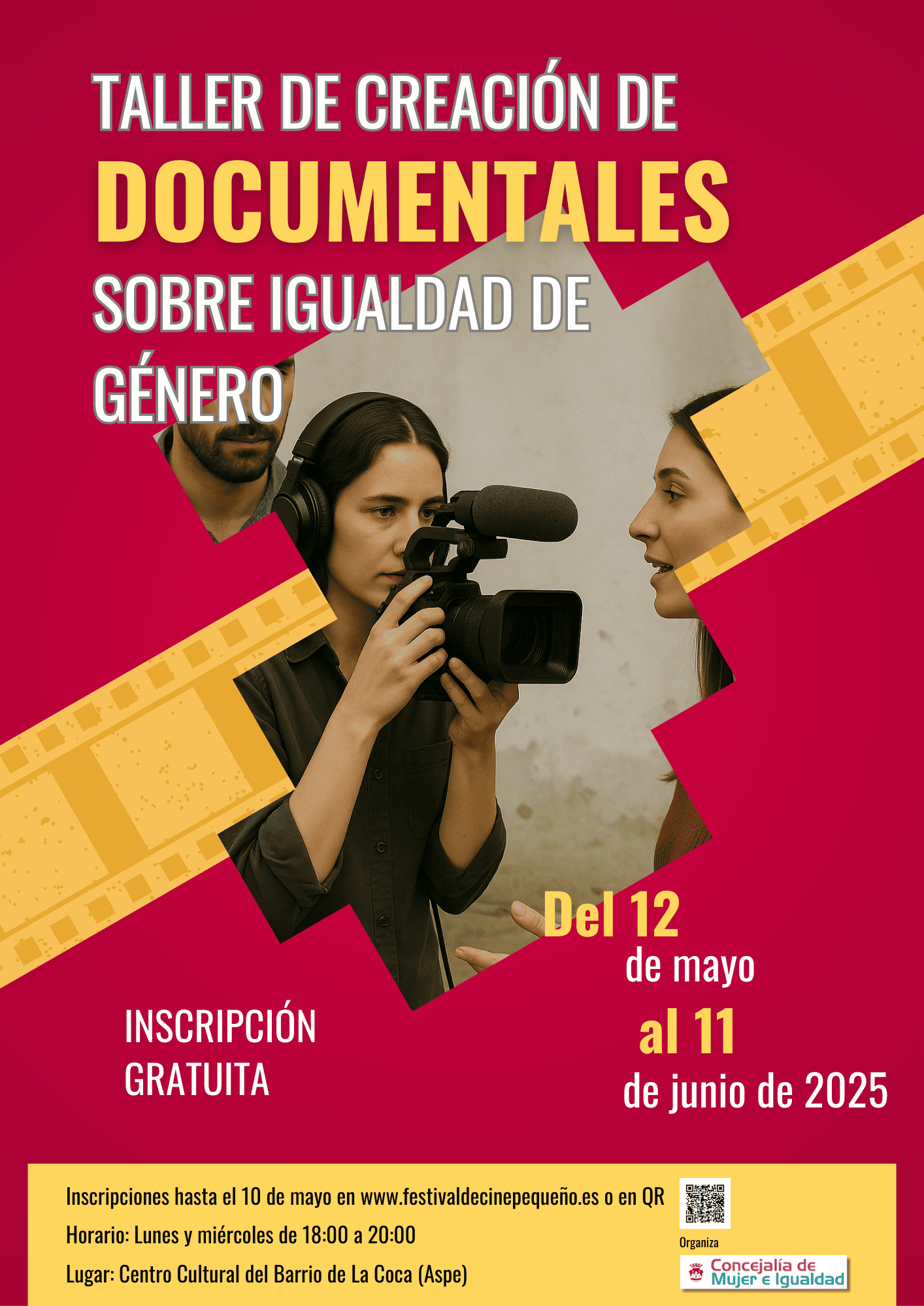 La Concejalía de Igualdad del Ayuntamiento de Aspe ha abierto la inscripción para el Taller de Creación de Documentales sobre Igualdad de Género, una iniciativa formativa y creativa dirigida a personas interesadas en la creación cinematográfica. El taller se enmarca como actividad paralela del 12º Festival Internacional de Cine Pequeño, que se celebrará este verano en el municipio.