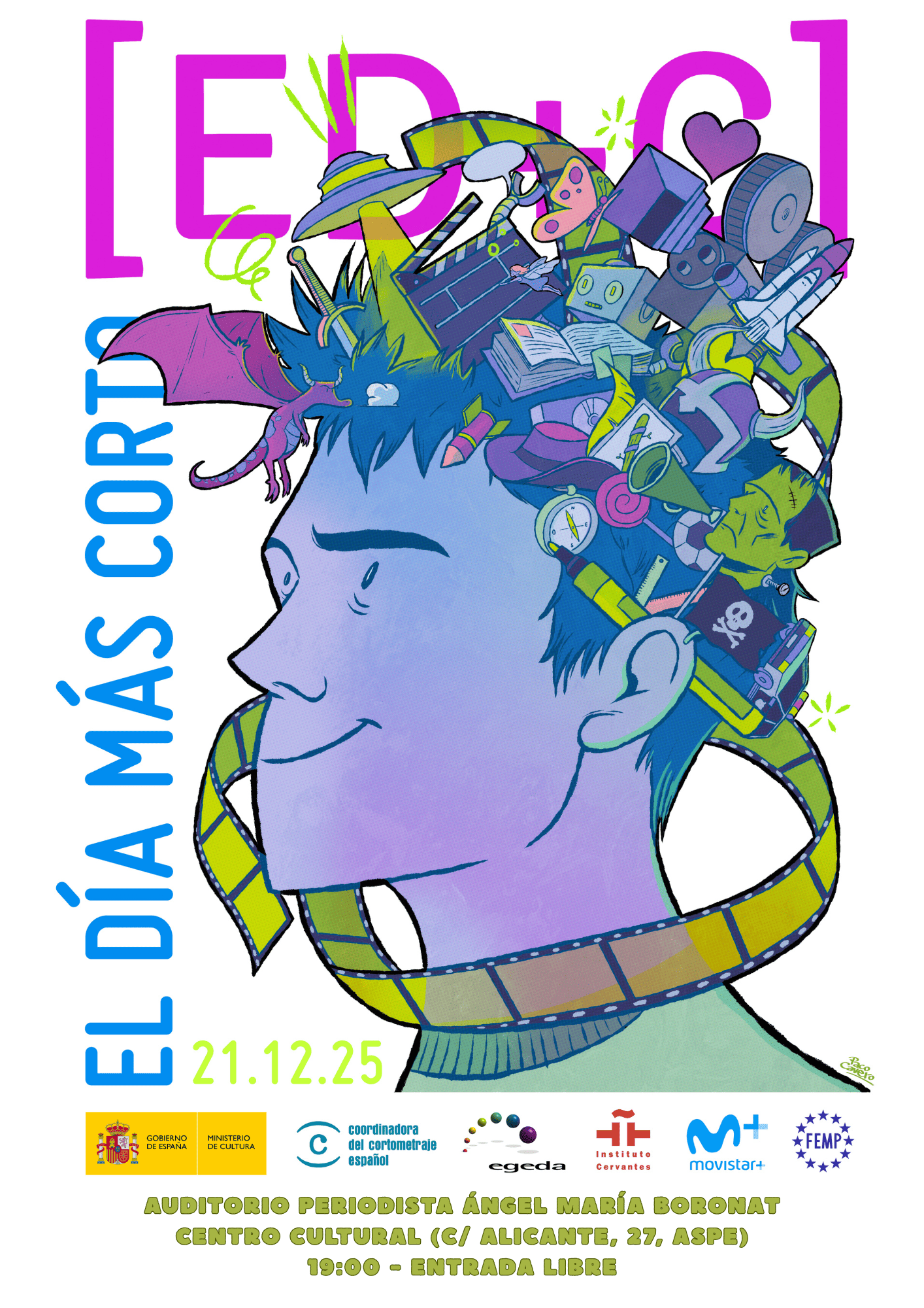 El Ayuntamiento de Aspe, a través de la Concejalía de Fiestas, organiza el próximo domingo 21 de diciembre, a las 19:00 horas, la El Día Más Corto 2025, una cita cultural de carácter internacional dedicada al cortometraje,que promueve la Coordinadora del Cortometraje Español. El evento se celebrará en el Auditorio Ángel María Boronat y ofrecerá al público una proyección especial con una destacada selección de cortometrajes españoles.